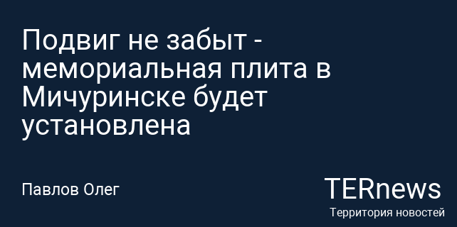 Подвиг не забыт - мемориальная плита в Мичуринске будет установлена
