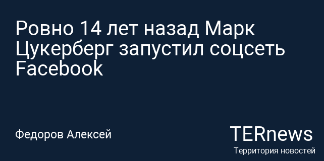 Ровно 14 лет назад Марк Цукерберг запустил соцсеть Facebook