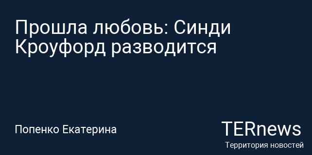 На днях папарацци запечатлели Синди без обручального кольца. По словам самой Кроуфорд, былых чувств к мужу у неё не осталось, дети Кайя и Пресли начали строить модельные карьеры и зажили самостоятельной жизнью, поэтому рядом с мужем её уже ничего не держит. На данный момент супруги не хотят предавать огласке свой развод. Официального заявления о расторжении брака не поступало ни от Синди, ни от её представителей. Инсайдер сообщил, что общественности обо всем станет известно после подачи документов на развод. На данный момент приоритетом Синди стало наведение порядка в финансовых делах, потому что кроме громкого развода последует громкое разделение совместного имущества.