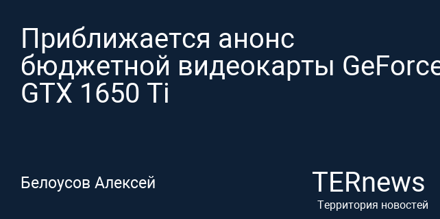 Приближается анонс бюджетной видеокарты GeForce GTX 1650 Ti