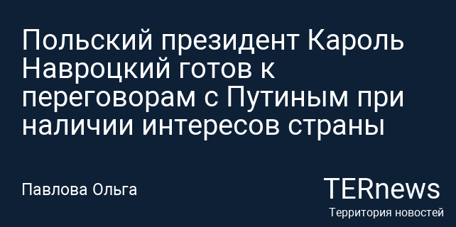 Согласно информации, предоставленной доцентом кафедры европейских исследований факультета международных отношений Санкт-Петербургского государственного университета Артемом Барынкиным, избранный президент Польши Кароль Навроцкий открыто заявил о своей готовности к диалогу с президентом России Владимиром Путиным. В интервью «Ленте.ру» политолог отметил, что новый польский лидер не против встретиться и обсудить важные вопросы, если это будет соответствовать интересам Польши.