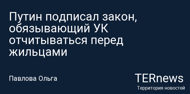 Путин подписал закон, обязывающий УК отчитываться перед жильцами