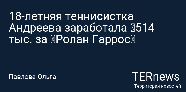 18-летняя теннисистка Андреева заработала €514 тыс. за «Ролан Гаррос»