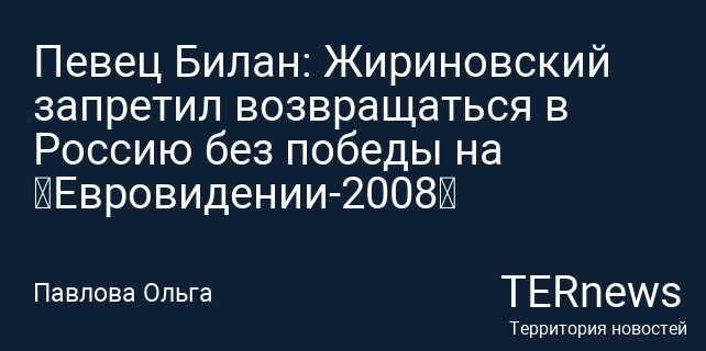 Певец Билан: Жириновский запретил возвращаться в Россию без победы на «Евровидении-2008»