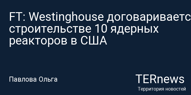 FT: Westinghouse договаривается о строительстве 10 ядерных реакторов в США