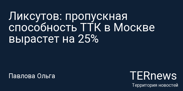 Ликсутов: пропускная способность ТТК в Москве вырастет на 25%