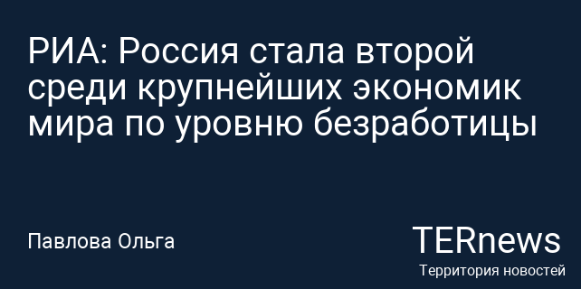 РИА: Россия стала второй среди крупнейших экономик мира по уровню безработицы
