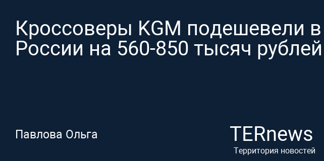Кроссоверы KGM подешевели в России на 560-850 тысяч рублей