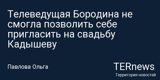 Телеведущая Бородина не смогла позволить себе пригласить на свадьбу Кадышеву