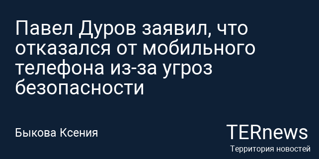 Павел Дуров заявил, что отказался от мобильного телефона из-за угроз безопасности