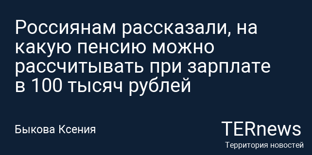 Россиянам рассказали, на какую пенсию можно рассчитывать при зарплате в 100 тысяч рублей