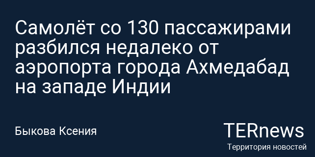 Самолёт со 130 пассажирами разбился недалеко от аэропорта города Ахмедабад на западе Индии, утверждает телеканал NDTV. Об этом сообщает телеканал NDTV.