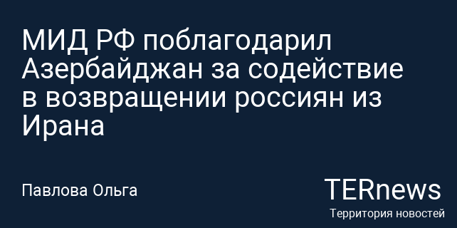Министерство иностранных дел России в своем Telegram-канале выразило признательность Азербайджану за оказанную помощь в возвращении россиян, находившихся в Иране. В министерстве отметили, что азербайджанская сторона обеспечила транспортировку от границы с Ираном до Баку, а также разместила группу в гостинице и способствовала возвращению граждан на родину.