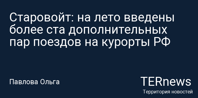 Старовойт: на лето введены более ста дополнительных пар поездов на курорты РФ