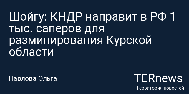 Шойгу: КНДР направит в РФ 1 тыс. саперов для разминирования Курской области