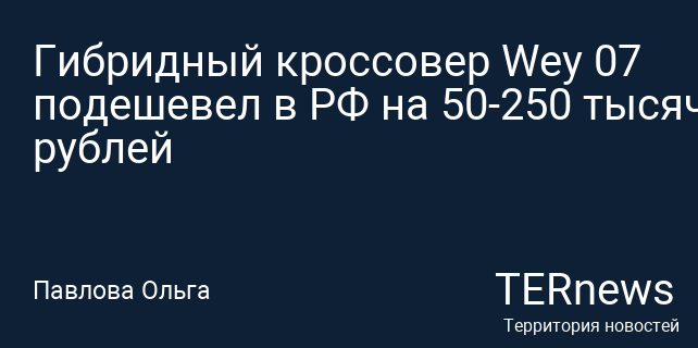 Гибридный кроссовер Wey 07 подешевел в РФ на 50-250 тысяч рублей