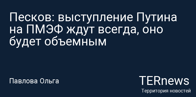 Песков: выступление Путина на ПМЭФ ждут всегда, оно будет объемным