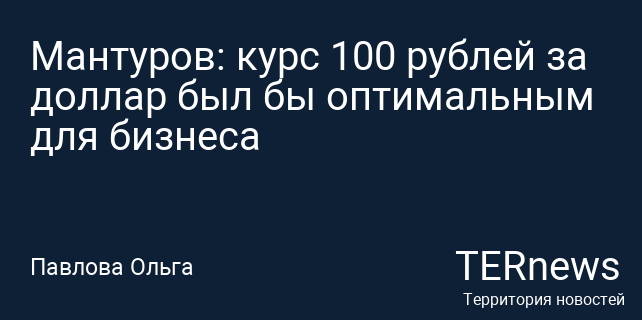 Мантуров: курс 100 рублей за доллар был бы оптимальным для бизнеса