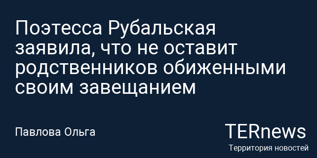 Поэтесса Рубальская заявила, что не оставит родственников обиженными своим завещанием