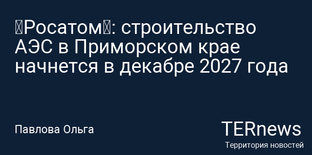 «Росатом»: строительство АЭС в Приморском крае начнется в декабре 2027 года