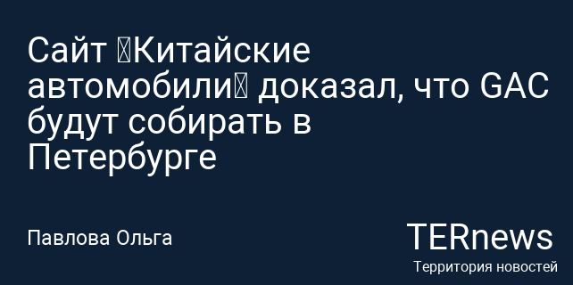 Сайт «Китайские автомобили» доказал, что GAC будут собирать в Петербурге