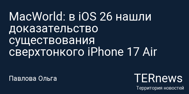 MacWorld: в iOS 26 нашли доказательство существования сверхтонкого iPhone 17 Air