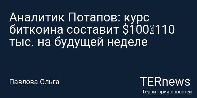Аналитик Потапов: курс биткоина составит $100–110 тыс. на будущей неделе