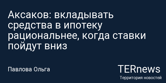 Аксаков: вкладывать средства в ипотеку рациональнее, когда ставки пойдут вниз