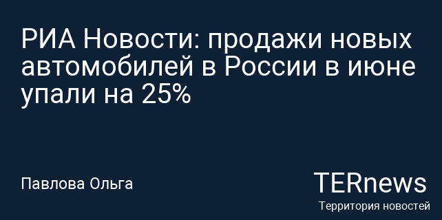 РИА Новости: продажи новых автомобилей в России в июне упали на 25%