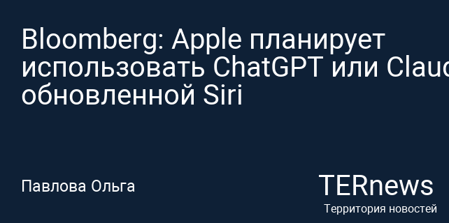 Bloomberg: Apple планирует использовать ChatGPT или Claude в обновленной Siri