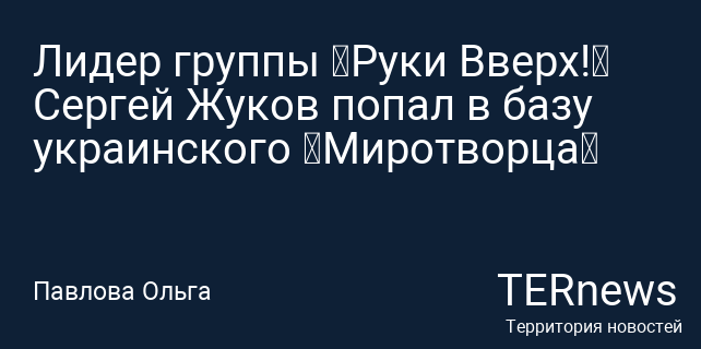 Лидер популярной группы «Руки Вверх!» Сергей Жуков оказался в списке украинского проекта «Миротворец», сообщает ТАСС. Причиной добавления стали его выступления в Крыму, после чего в апреле 2024 года его данные были внесены в базу. Портал «Миротворец», созданный в 2014 году, предназначен для публикации информации о людях, которые, по мнению его авторов, могут угрожать национальной безопасности Украины. В эту базу попадают не только артисты, но и журналисты, вызвавшие недовольство у администраторов сайта.