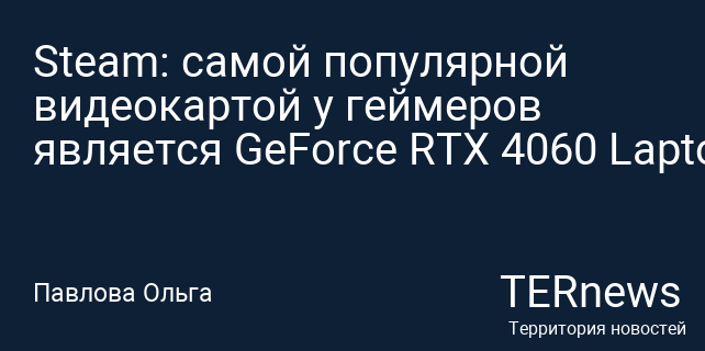 Steam: самой популярной видеокартой у геймеров является GeForce RTX 4060 Laptop