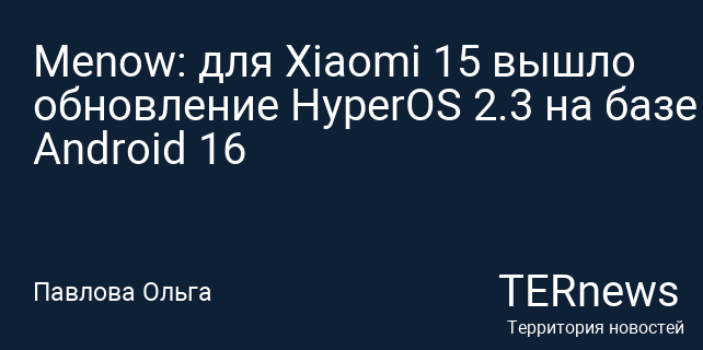 Menow: для Xiaomi 15 вышло обновление HyperOS 2.3 на базе Android 16