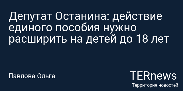 Депутат Останина: действие единого пособия нужно расширить на детей до 18 лет