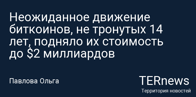 Неожиданное движение биткоинов, не тронутых 14 лет, подняло их стоимость до $2 миллиардов