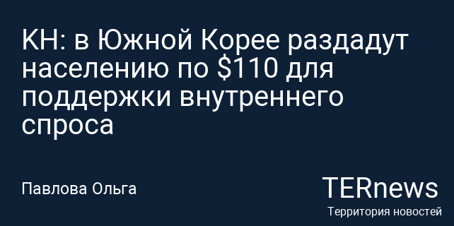 KH: в Южной Корее раздадут населению по $110 для поддержки внутреннего спроса