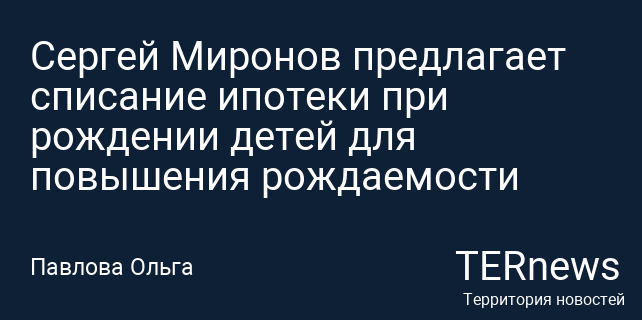 Председатель партии «Справедливая Россия — За правду» Сергей Миронов выдвинул инициативу о поэтапном списании ипотечного долга в России с каждым новым ребенком в семье. Он считает, что такая мера может существенно повлиять на рост рождаемости. Миронов отметил, что главной преградой для появления детей в семьях является отсутствие собственного жилья, которое даже с учетом льготной ипотеки остается недоступным для многих.