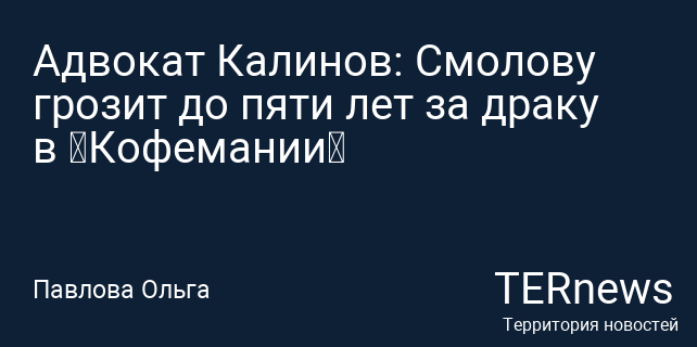 Адвокат Калинов: Смолову грозит до пяти лет за драку в «Кофемании»