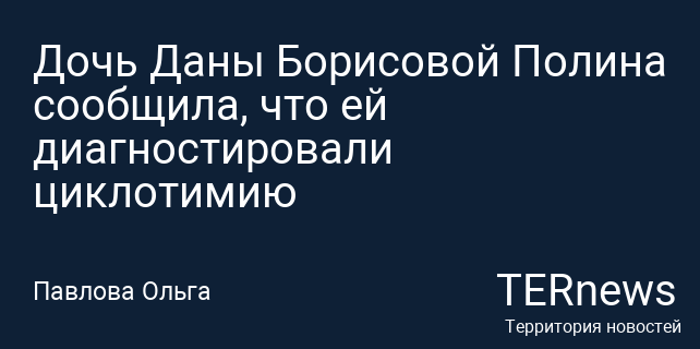 Дочь Даны Борисовой Полина сообщила, что ей диагностировали циклотимию