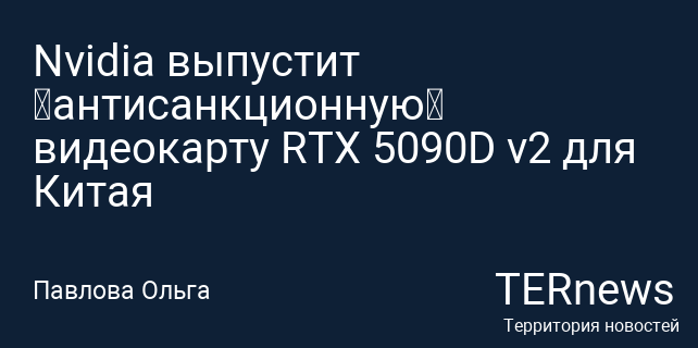 Nvidia выпустит «антисанкционную» видеокарту RTX 5090D v2 для Китая
