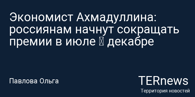 Экономист Ахмадуллина: россиянам начнут сокращать премии в июле — декабре