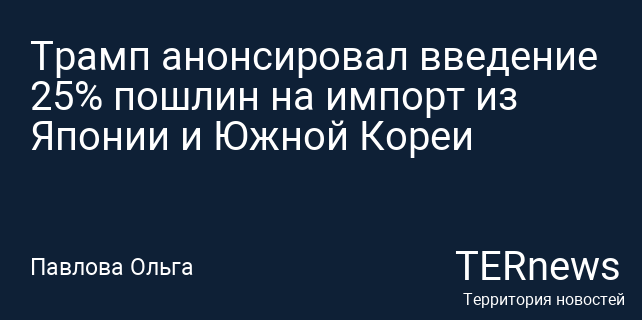 Трамп анонсировал введение 25% пошлин на импорт из Японии и Южной Кореи