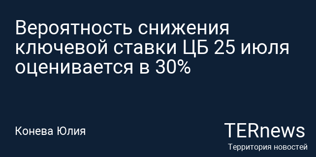 Вероятность снижения ключевой ставки ЦБ 25 июля оценивается в 30%
