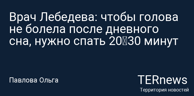 Врач Лебедева: чтобы голова не болела после дневного сна, нужно спать 20–30 минут