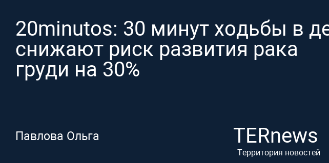 20minutos: 30 минут ходьбы в день снижают риск развития рака груди на 30%