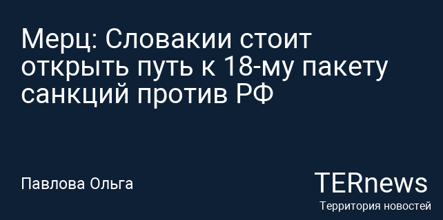 Канцлер Германии Фридрих Мерц выступил с призывом к Словакии, требуя прекратить блокировку принятия 18-го пакета европейских санкций против России. Как сообщает РИА Новости, он указал на то, что только одна страна не дала согласие на введение этих мер. Мерц выразил надежду, что Словакия и ее премьер-министр изменят свою позицию и позволят продвинуться в этом вопросе в рамках Европейского Союза.