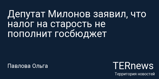 Депутат Милонов заявил, что налог на старость не пополнит госбюджет