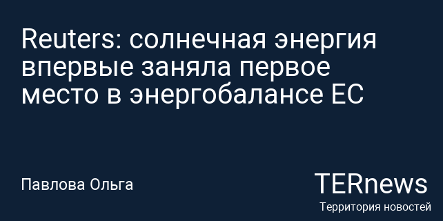 Reuters: солнечная энергия впервые заняла первое место в энергобалансе ЕС