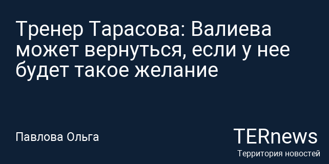Тренер Тарасова: Валиева может вернуться, если у нее будет такое желание