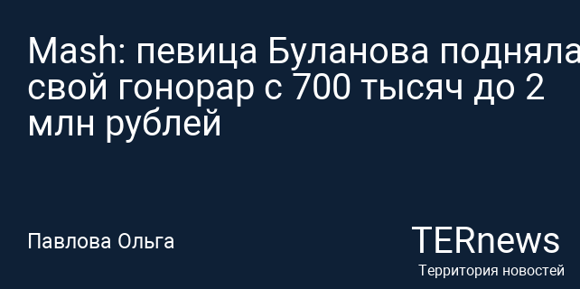 Mash: певица Буланова подняла свой гонорар с 700 тысяч до 2 млн рублей